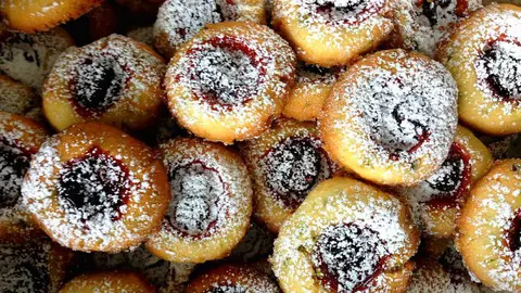 Papanaşi prăjiţi, cu dulceaţă şi smântână