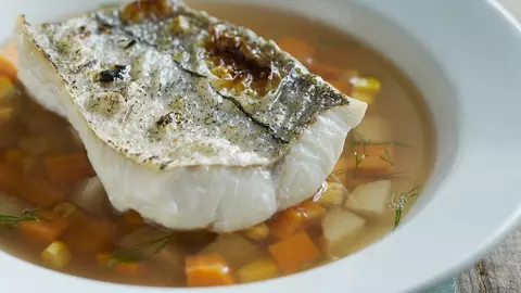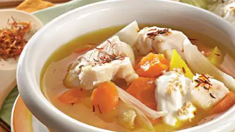 Reţete: Supă de peşte cu orez şi migdale tocate