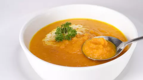 Reţete: Supă de morcov şi dovleac, cu ardei gras
