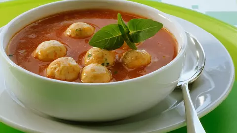 Supă de roşii cu găluşte de brânză