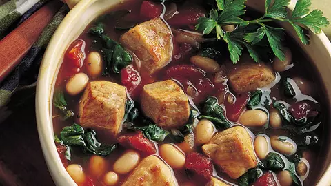 Supă de fasole cu spanac şi carne