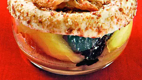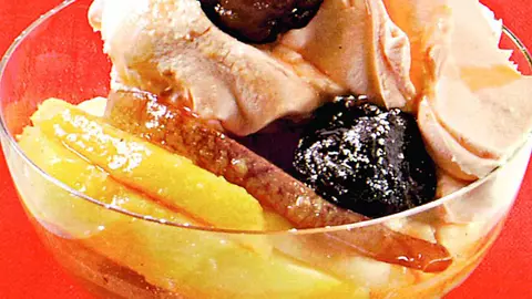 Salată de fructe cu migdale caramel