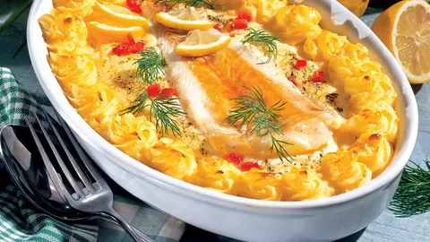 Peşte la cuptor cu piure de cartofi