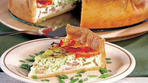 Tartă cu brânză, şuncă şi ciuperci