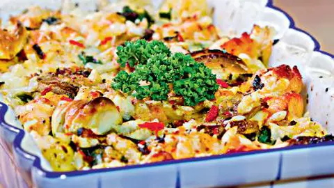 Conopidă gratinată la cuptor cu brânză și smântână. Cea mai simplă rețetă