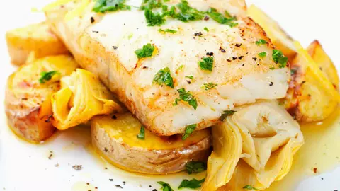 Cod fript în unt de usturoi