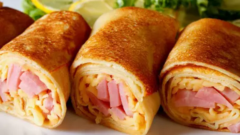 Clătite pufoase cu șuncă și cașcaval afumat
