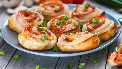 Rulouri din aluat cu șuncă și cașcaval