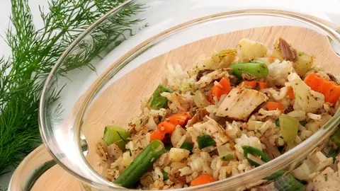 Reţete: Supă de peşte cu orez şi migdale tocate