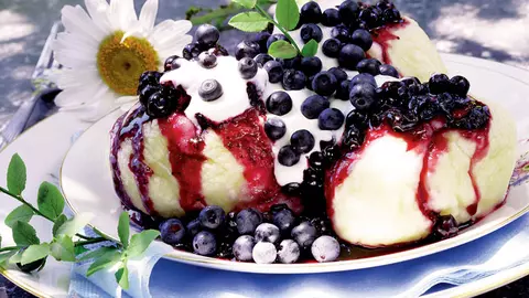 Papanaşi prăjiţi, cu dulceaţă şi smântână