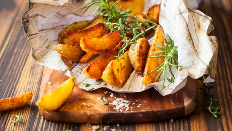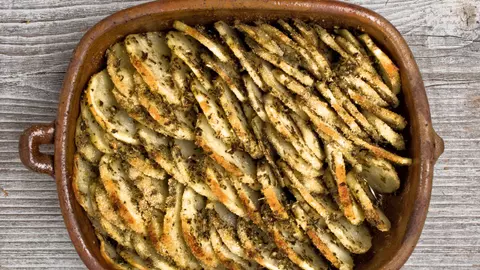 Reţete: Cartofi copţi cu migdale şi busuioc