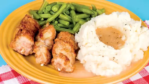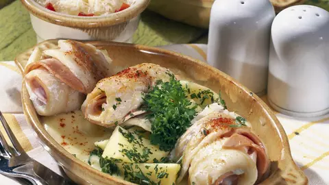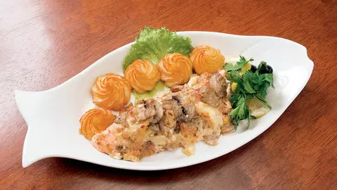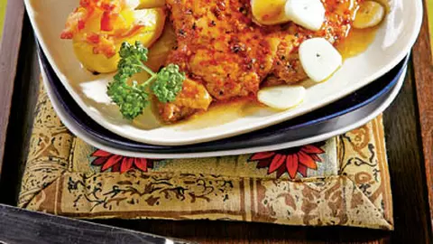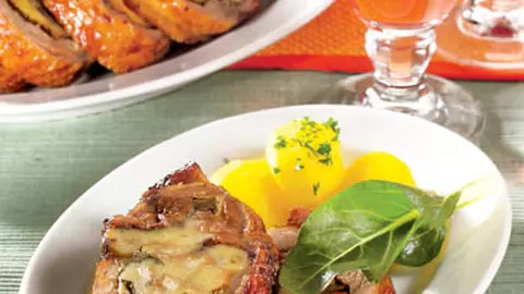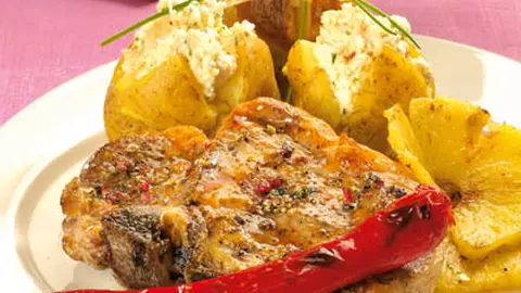 Cotlet de porc cu ananas şi cartofi umpluţi