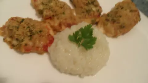 Piept de pui cu sos de roşii în crustă de pesmet