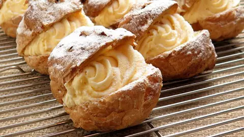 Papanaşi prăjiţi, cu dulceaţă şi smântână