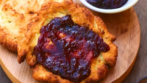 Papanaşi prăjiţi, cu dulceaţă şi smântână