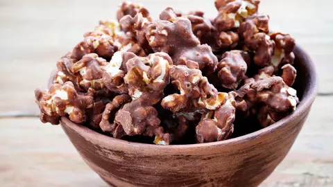 Popcorn cu ciocolată Snickers din 3 ingrediente