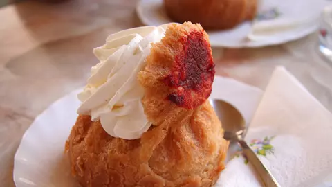 Papanaşi prăjiţi, cu dulceaţă şi smântână