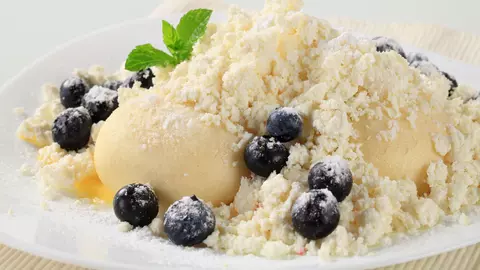 Papanaşi prăjiţi, cu dulceaţă şi smântână