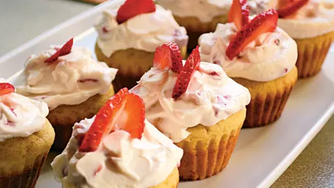 Brioşe cu frosting de mascarpone şi capşuni