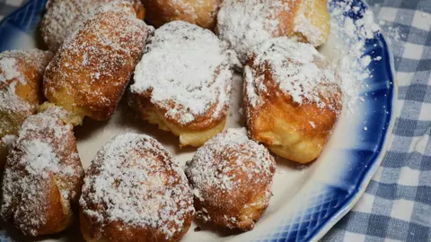 Papanaşi prăjiţi, cu dulceaţă şi smântână