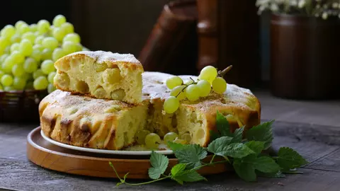 Prăjitură cu struguri și aluat pufos. Rețeta perfectă pentru un desert simplu, aromat și elegant