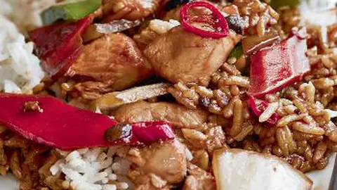 Pui în sos oriental cu orez