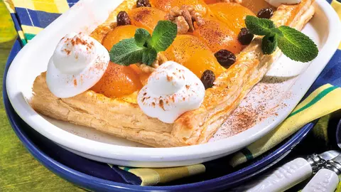 Ruladă cu cremă de brânză şi piure de caise