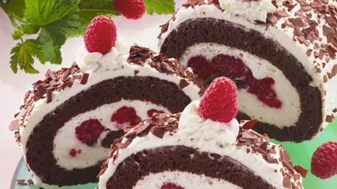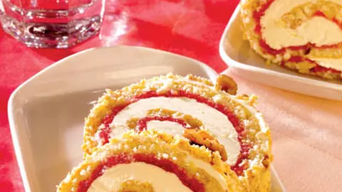 Ruladă cu nuci şi piure de zmeură