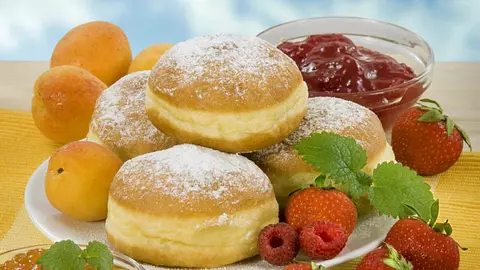 Papanaşi prăjiţi, cu dulceaţă şi smântână