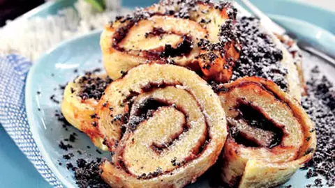Covoraş cu mac şi glazură de ciocolată