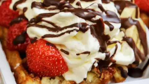 Papanaşi prăjiţi, cu dulceaţă şi smântână