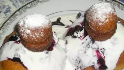 Papanaşi prăjiţi, cu dulceaţă şi smântână