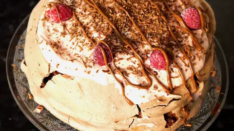 Pavlova de ciocolată cu cremă de zmeură
