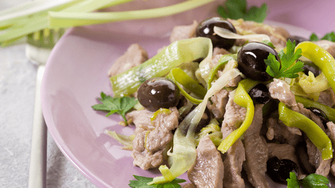 Mâncare de praz cu pui și măsline – rețeta cu piept de pui în stil mediteranean