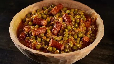 Mâncare de mazăre cu cârnați și roșii – rețeta rapidă