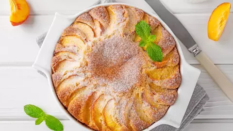 Prăjitură cu piersici – rețeta cu cremă de brânză