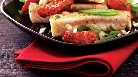 Crap cu salată de roșii coapte și usturoi