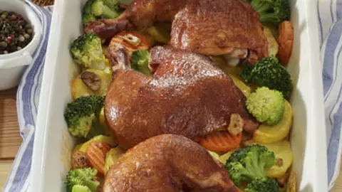 Pulpe de pui pe pat de legume