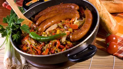 Mâncare picantă cu ardei şi cârnaţi