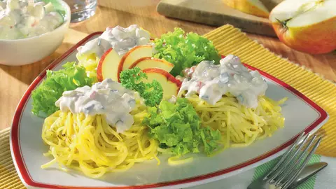 Paste cu pui şi sos cu verdeaţă