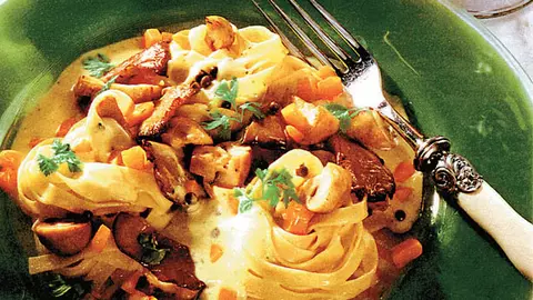 Ciuperci cu sos de smântână şi paste