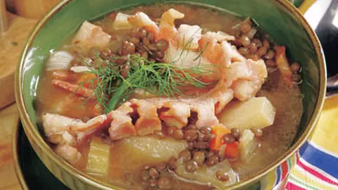 Supă de linte cu costiţă afumată