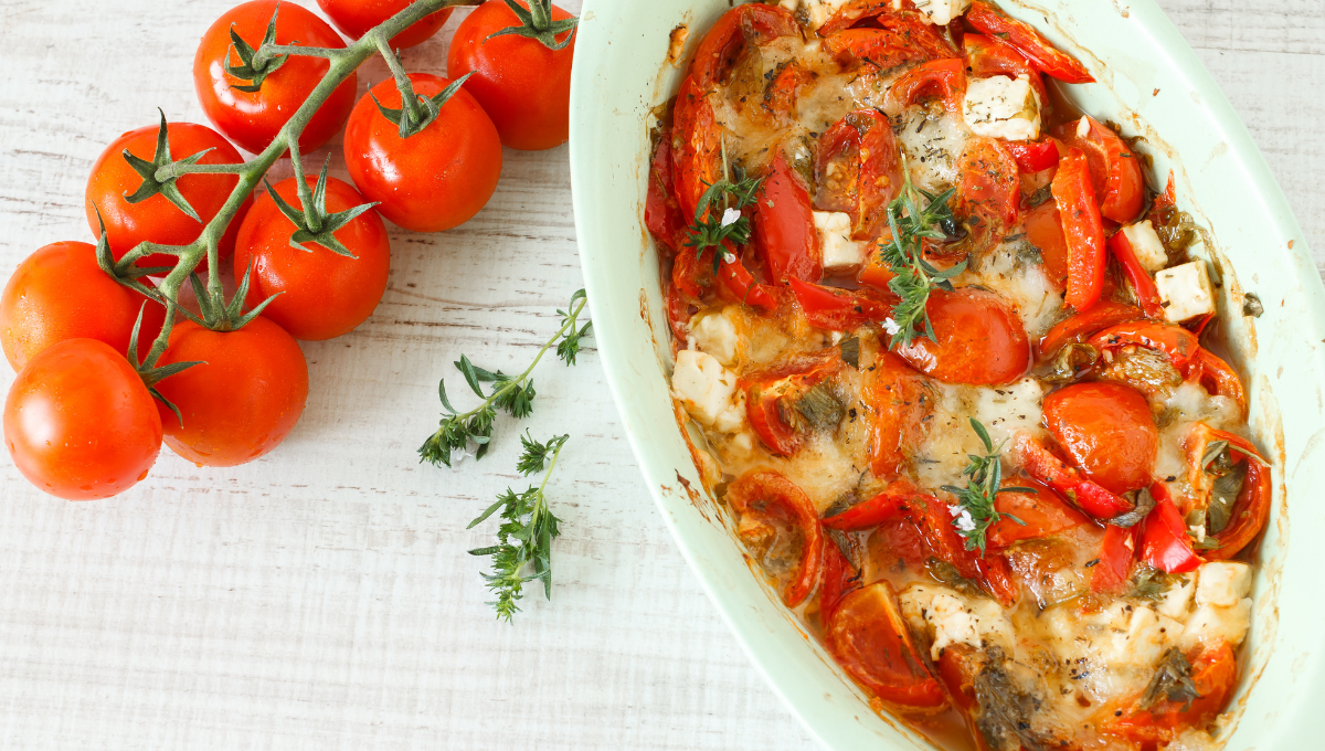 Alege-le bine coapte, dar nu apoase. Dacă sunt prea zemoase, scurge-le ușor înainte de a le pune în vas. Când se coc lent, zaharurile naturale se caramelizează, aducând o dulceață subtilă care echilibrează sarea feta-ului și iuțeala ardeiului.