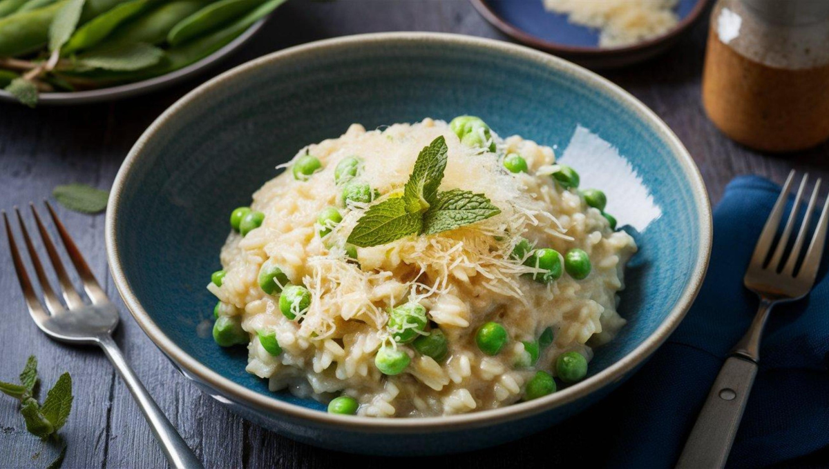 În tradiția italiană, reţeta de risotto cu mazăre marchează începutul primăverii. Mazărea proaspătă, dulce și vibrantă, aduce un contrast perfect orezului cremos, transformând preparatul într-o explozie de culoare și prospețime. Este un fel de mâncare care îmbină confortul rustic cu eleganța rafinată, ideal atât pentru mesele de familie, cât și pentru cinele fine.