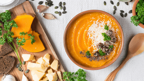 Supă cremă de dovleac cu parmezan. O rețetă simplă și gustoasă pentru toamnă