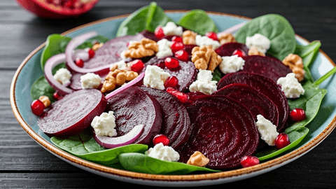 Salată de sfeclă roșie crudă – rețeta cu măr și brânză de capră